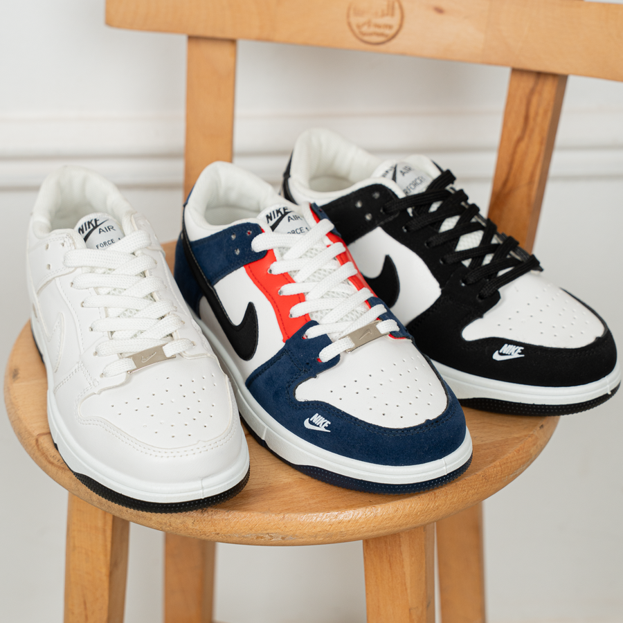 الألوان المتاحة تشمل الأبيض، والأبيض مع الكحلي، والأبيض مع الأسود، مما يجعله مناسباً لكل الأذواق. مقاسات الكوتشي متوفرة من 41 إلى 45، مما يضمن لك تلبيس مظبوط ومريح.